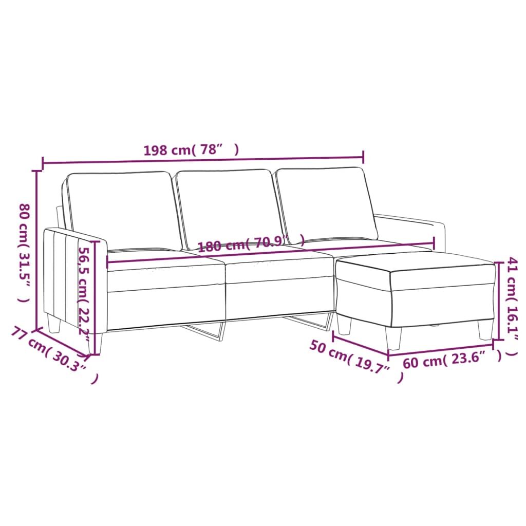 This 3-seater sofa with footstool is an excellent place for chatting, reading, watching TV or just relaxing. It is meant to be a focal point in your home. Durable fabric: The fabric features a simple and clean look while remaining breathable and long-lasting.Sturdy and stable frame: The plywood and metal frame of the sofa with footstool ensures sturdiness and stability.Comfortable seat experience: The armchair is highly comfortable with the thickly padded seats, armrests and back pillows.Versatile footstool: The stool is suitable for resting your feet when you lie on a sofa or recliner, or offering you an additional seat in your room. Additionally, the simple design and compact size make it ideal for almost all your living spaces.Eye-catching design: Featuring a simple yet modern design, this sofa with footstool is meant to be an eye-catcher in your room.