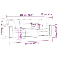 This 3-seater sofa, standing out with its modern design and throw pillows, will be an excellent place for chatting, watching TV or just relaxing. Durable microfibre: Microfibre is a synthetic fabric consisting of ultra-fine fibres, which are particularly impervious to stains. Microfibre fabric is a great choice for furniture upholstery due to its durability and easy cleaning.Sturdy and stable frame: The metal frame of the lounge sofa ensures sturdiness and stability.Throw pillows with inserts: These throw pillows come with PP cotton inserts, so you don't bother to buy fillings.Comfortable seat experience: The sofa is highly comfortable with the thickly padded seats, armrests and back pillows. Besides, the decorative pillows can add extra comfort when you are seated or lying.