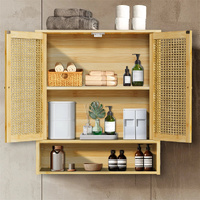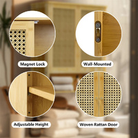 Storage Shelves & Double Doors -Featuring an open shelf and two interior shelves for organization needs, used for holding bathroom necessities or kitchen accessories, or displaying scented candles, plants, the double doors with strong magnet lock to hold it shut, prevent things from lost and keep them out of sight, rattan doors frame with hollow-out design, allowing air to circulates inside when the doors are closed