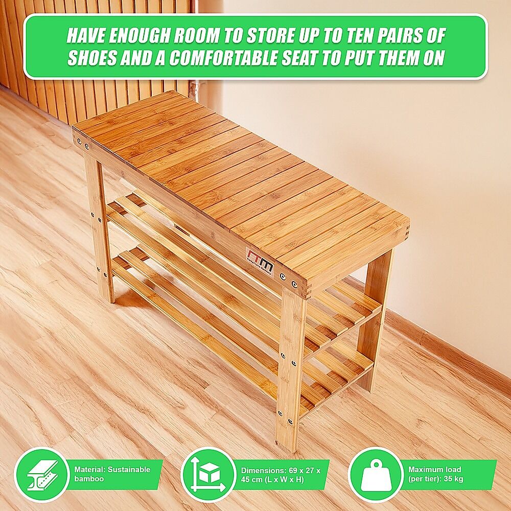 $57.33If you struggle to get your shoes on at the door without falling over while standing on a four-inch high heel, this amazing bamboo storage bench by Randy Travis Machinery is the perfect solution. With a bench on top and two tiers of airy racks on the bottom, you have enough room to store up to ten pairs of shoes and a comfortable seat to put them on. Bamboo is one of the most durable materials on the planet, yet it's sustainable and eco-friendly the best of both worlds.