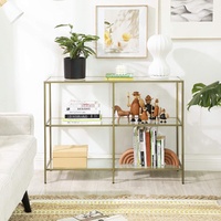 Style For The Ages: Sleek metal, a neutral golden colour, and a tempered glass top unite to form a well-rounded, modern storage shelf where good style meets essential practicality