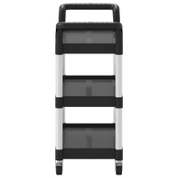 Create a distinctive touch and add more storage space with this 3-tier trolley. Durable material: Polypropylene (PP) is a popular plastic that is also one of the most used materials in outdoor furniture. It's lightweight, tough, and resistant to impact. Also, the aluminium tubes ensure the stability and sturdiness of the trolley.Ample storage space: The kitchen trolley, featuring 3 shelves, provides sufficient space to place snacks, drinks, vases, fruit bowls, or other decorative items.Flexible movement: The drink trolley comes with 4 rubber wheels and 2 handles, making it easy and convenient to roll it wherever you need it. Additionally, 2 wheels are lockable for added control and safety.Wide applications: This bar trolley can be used in different settings, such as the kitchen, dining room, living room, or garage, and can be used as a drink cart, kitchen cart, or tool trolley. Good to know:The rubber mallet is required during the installation (not included in the delivery).