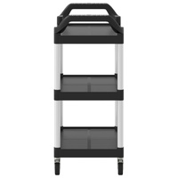 Create a distinctive touch and add more storage space with this 3-tier trolley. Durable material: Polypropylene (PP) is a popular plastic that is also one of the most used materials in outdoor furniture. It's lightweight, tough, and resistant to impact. Also, the aluminium tubes ensure the stability and sturdiness of the trolley.Ample storage space: The kitchen trolley, featuring 3 shelves, provides sufficient space to place snacks, drinks, vases, fruit bowls, or other decorative items.Flexible movement: The drink trolley comes with 4 rubber wheels and 2 handles, making it easy and convenient to roll it wherever you need it. Additionally, 2 wheels are lockable for added control and safety.Wide applications: This bar trolley can be used in different settings, such as the kitchen, dining room, living room, or garage, and can be used as a drink cart, kitchen cart, or tool trolley. Good to know:The rubber mallet is required during the installation (not included in the delivery).
