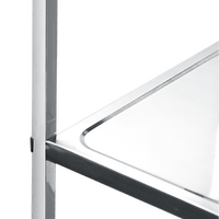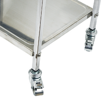 Its sturdy construction and locking wheels ensure against accidental bumps knocking food and dishes to the floor. Two handles provide extra control. With three tiers of shelves, you can feed a crowd or clean up after them without time-wasting return trips, saving you or your waitstaff valuable time. Don't waste a minute more on extra trips to the kitchen. Order your kitchen trolley today!