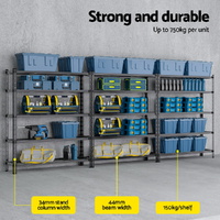 Its middle supporting beam adds extra stability, while the expandable design allows you to increase your storage capacity by adding extra units as required. Whether you need more space for your home or a larger setup in your garage or workshop, the Giantz 5-Tier Storage Rack provides the perfect, space-saving solution.