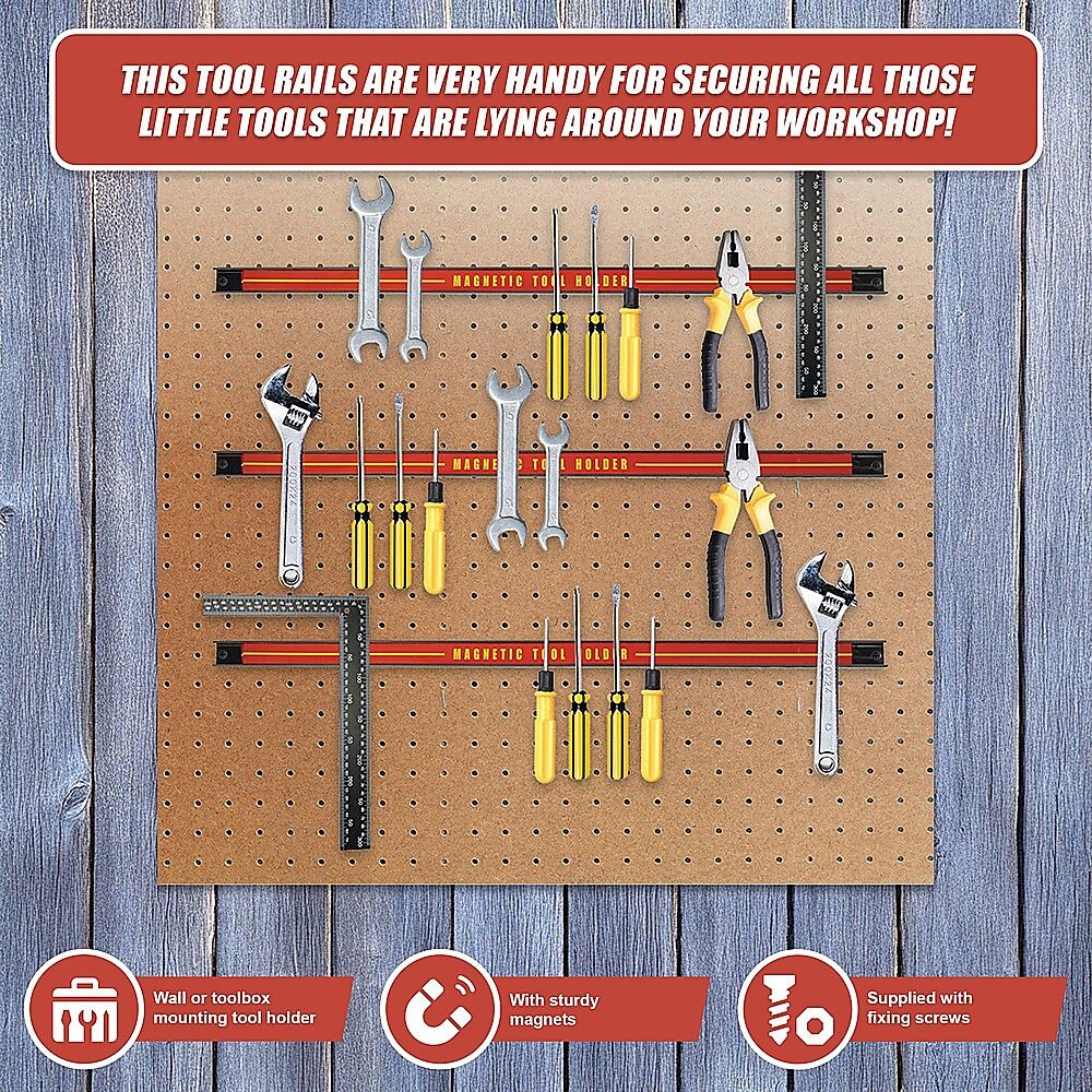 $45.11There are few things a productive worker likes more than an organized work area - and with this sturdy magnetic tool holder, it will save you space by making your tool area larger and saves your time looking for the right tools. This tool rails are very handy for securing all those little tools that are lying around your workshop!