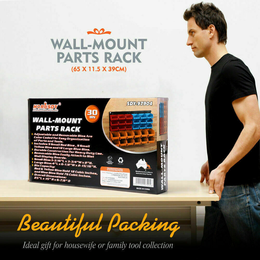 30 Bins Tool Storage Wall Mounted Organiser Parts Garage Workshop Box Heavy Duty