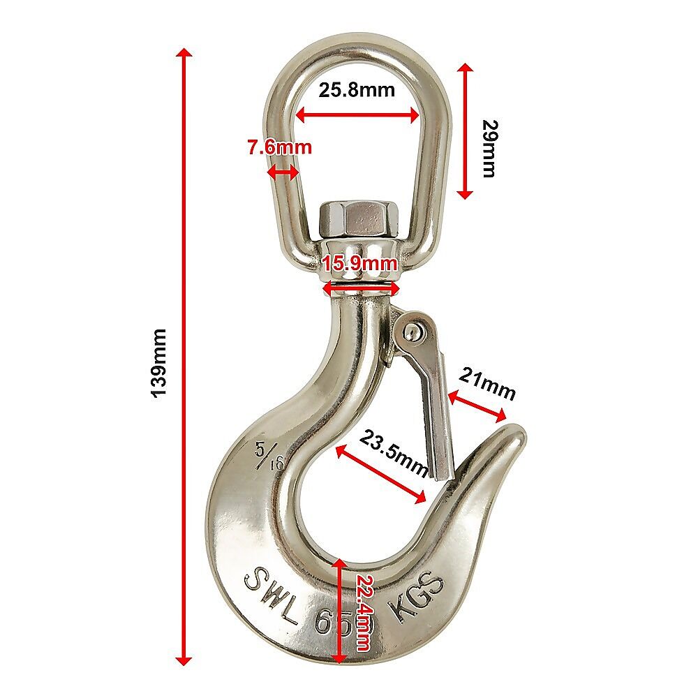 At the top of the hook, the Clevis configuration enables it to be securely attached to a bracket or mounted on a chain if lateral movement is required. The 360 swivel action facilitates precision movements, enabling the hook to be used successfully in a wide range of different locations.