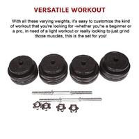 Made from a durable plastic outter with cement filling, these weights are easy to slip on and off in order to customise your workout. You'll receive 8 x 2.5kg weights and 4 x 1.25kg weights. You'll also receive 4 easy to use screw collars to ensure your weights are securely in place.