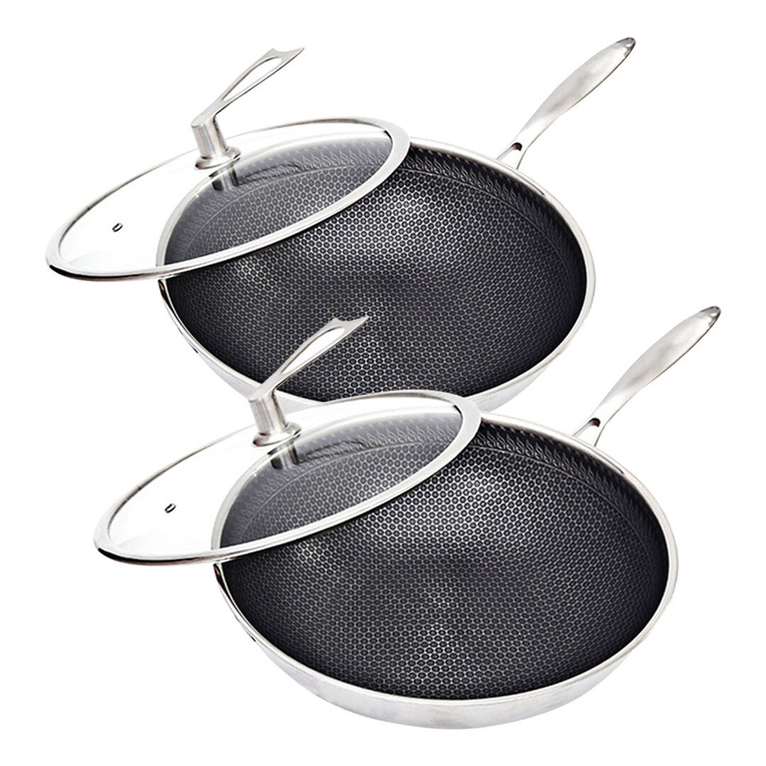 32cm Stainless Steel Tri-Ply Frying Cooking Fry Pan Textured Non Stick Interior Skillet with Glass Lid