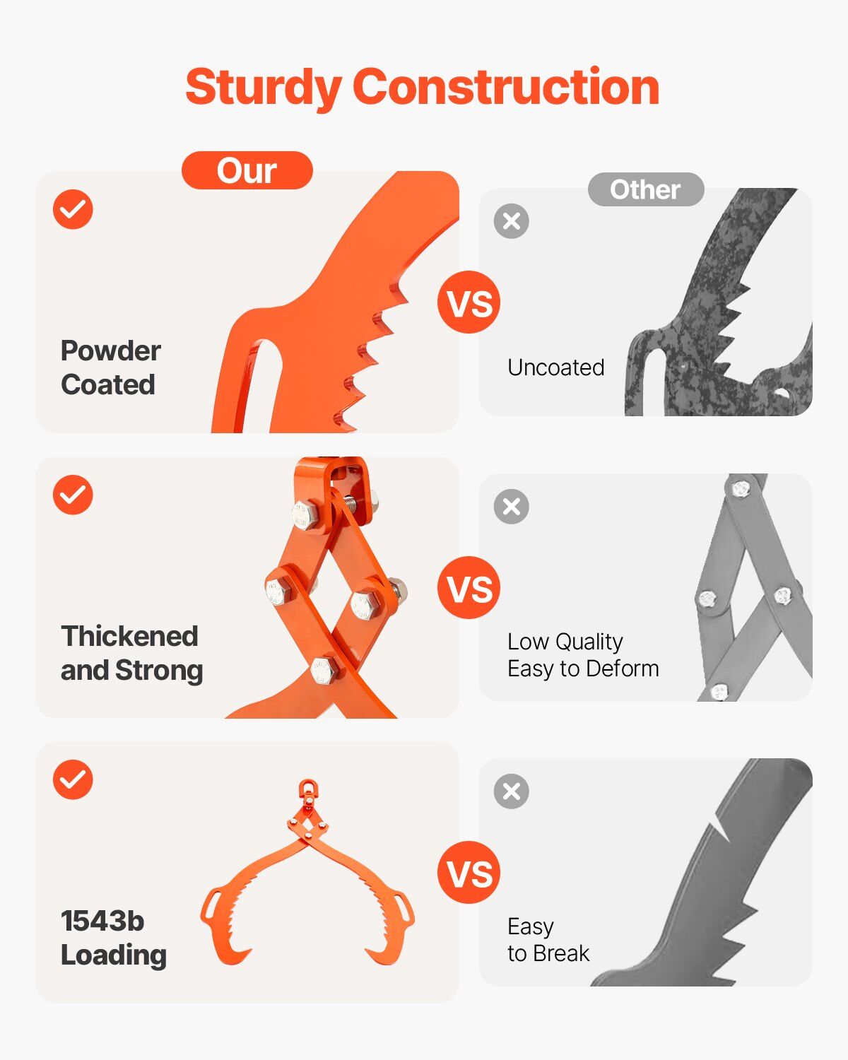 Crafted from high-hardness forged steel with a rust-resistant powder coating, these log skidding tongs are built to withstand harsh environments, ensuring longevity and reducing maintenance or replacement needs.