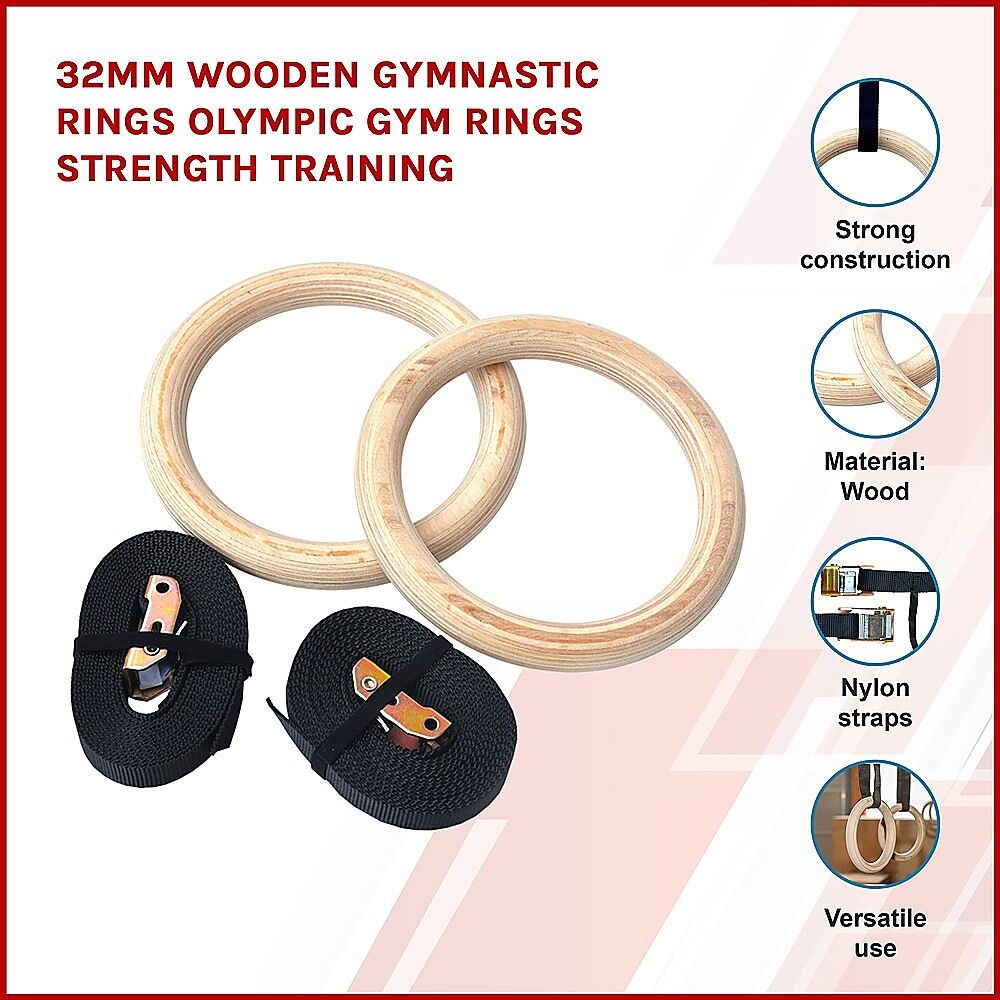 $57.33Train for your own pleasure or aim high in competition with these 32-millimetre wooden Olympic gymnastic rings from Randy Travis Machinery. Other athletes may find rings perfect for cross training on strength and balance, while physical therapists often use them for patients who need to stabilise their core.