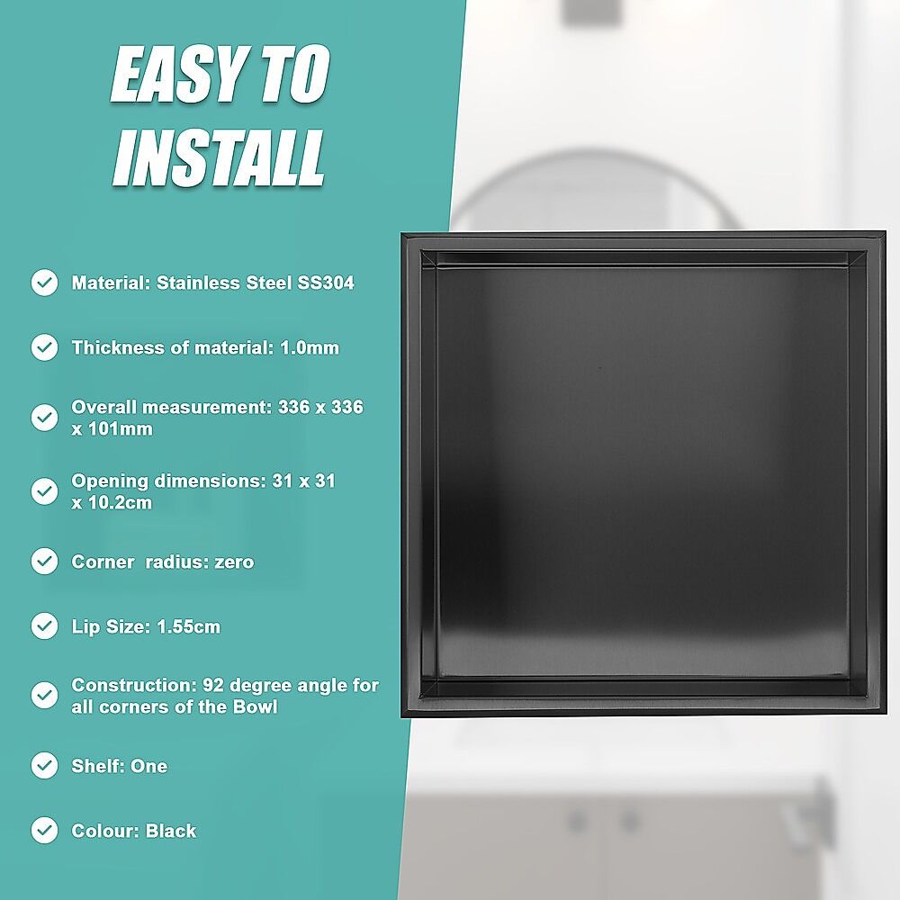 $141.29Transform your bathroom with our 336 x 336 x 101mm Shower Niche Single Shelf Organizer, No Tile Needed!