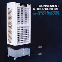 The PolyCool has a powerful 220 watt motor and axial fan that produces a massive flow rate of up to 10,000m/h, which is ideal for rapidly cooling areas as large as 40m. With a huge 35L water tank, the PY-EC7 Evaporative Cooler can deliver up to 15 hours of cool air before the water level window indicates a refill is required! It comes complete with two Bonus ice cooling packs which you can add for extra chilled air output.