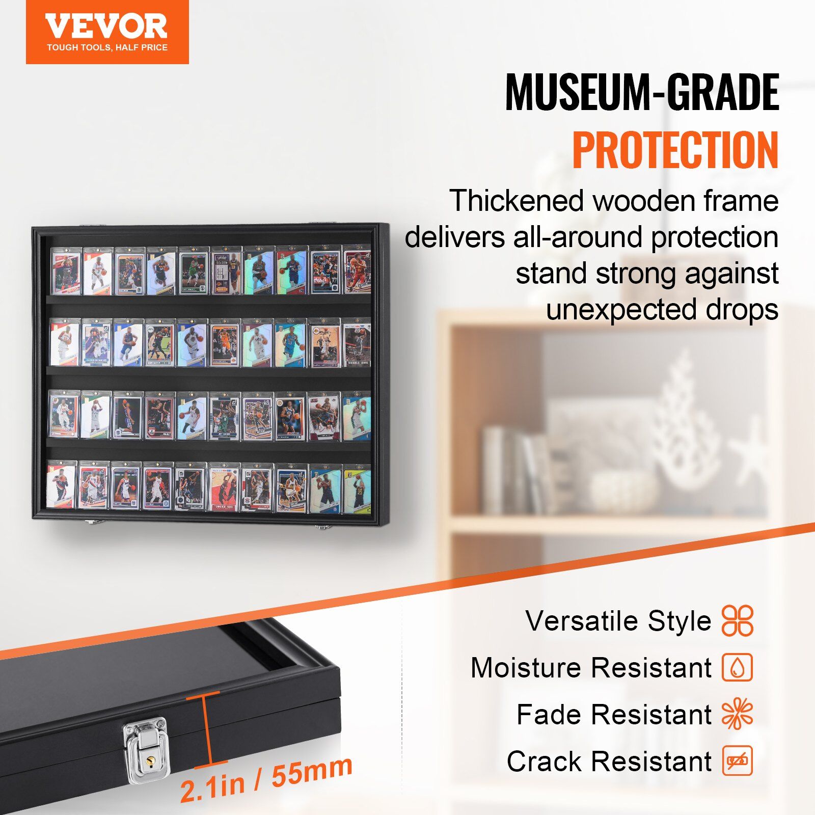 Our display cases for cards features PC glass panels with exceptional transparency (over 92%) and UV protection (98% UV resistance), providing a high-definition viewing experience. Your cards stay vibrant and resist fading or discoloration, even under prolonged exposure to light. Invest in quality and protection for your memorabilia today!