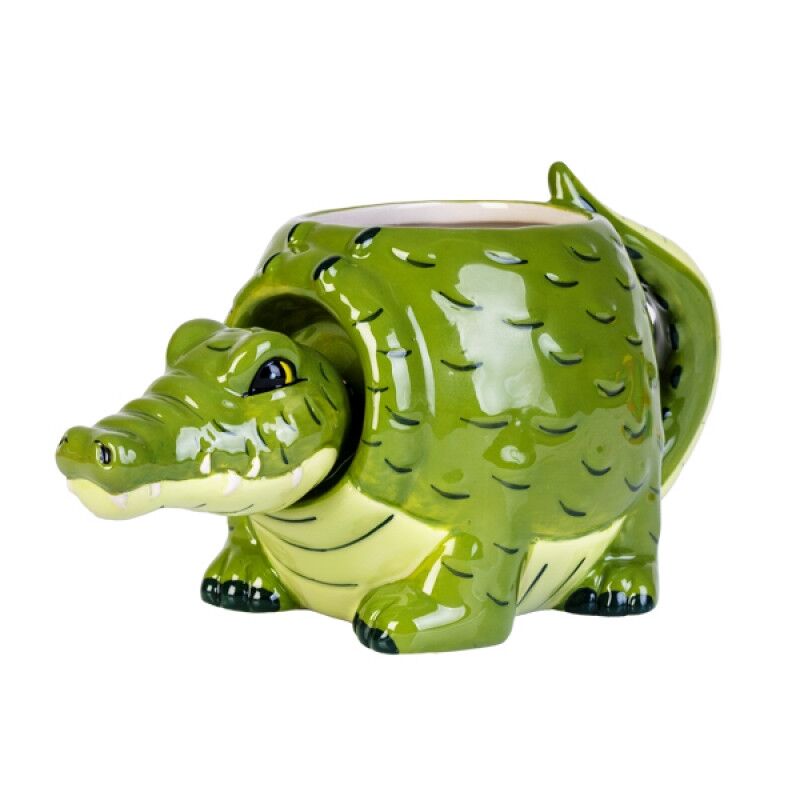 Wake up and snap to it with the Crocodile 3D Bobble Head Mug! This unique mug is designed to look like a scaly green crocodile, complete with pointy teeth and its tail acting as the handle. Thanks to a bouncy spring, the crocodile's head bobs up and down with every sip. It will croc your world!