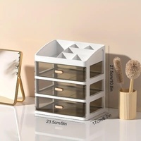 Organize your beauty and personal care essentials with this elegant and functional 3-layer makeup organiser. Designed for maximum convenience, the three spacious drawers and multi-section top tray provide ample storage for cosmetics, skincare products, and office supplies. The transparent drawer design ensures quick access while maintaining a sleek and modern aesthetic that fits any décor. Perfect for decluttering your space, this organiser saves up to 70% of desktop space, keeping your items neatly stored and easy to find.?