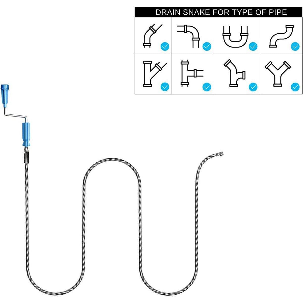 Durable stainless steel spring construction designed to bend and navigate tight clogs