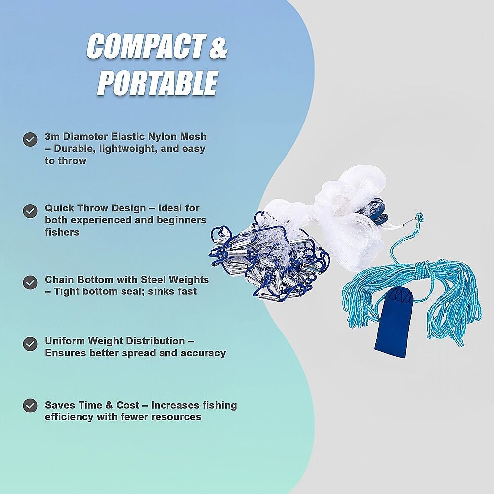 Whether you're a seasoned angler or just starting out, this net makes casting easy, accurate, and effective. Its uniform weight distribution enhances spread and helps prevent fish from escaping, ensuring a successful haul every time.