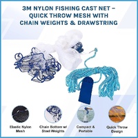 Upgrade your fishing gear with this high-quality 3m Nylon Fishing Cast Net designed for efficiency, ease, and durability. Crafted from strong elastic nylon, this cast net offers a quick-throw mechanism with a weighted chain bottom that allows it to sink rapidly and form a tight sealmaximising your catch.