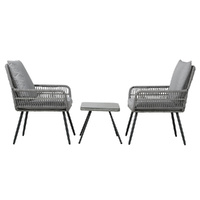 $280.11Experience the best the outdoors has to offer with this Gardeon 3-piece Outdoor Bistro Setting. Featuring two single chairs and a matching coffee table, this lounge set is perfect for sitting outside and watching the world go by in comfort and style. The set is made using powder-coated steel and meticulously woven wicker for rust and water resistance, while the outdoor cushions feature water and UV-resistant covers and thick 8cm high-density foam for comfort. It is easy to assemble and features non-slip feet to keep everything in its place. The coffee table features a durable tempered glass tabletop with a wicker border and additional bracing to hold all of your favourite drinks, reading materials or outdoor games. Maintenance is as easy as wiping down the furniture, and you can remove the cushion covers for even easier cleaning. So what are you waiting for? Make the most out of the beautiful weather with a Gardeon 3-piece Outdoor Bistro Setting.