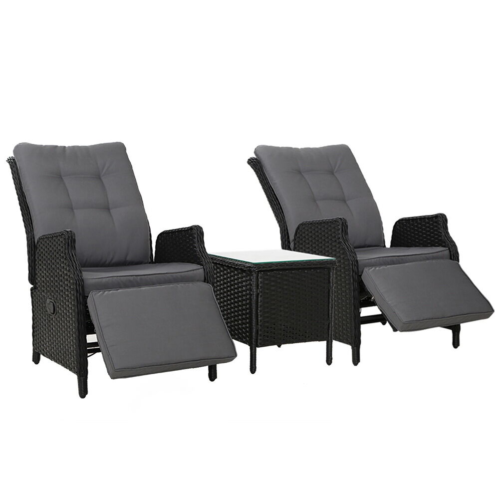 $504.77Now you can really sit back and chill in the outdoors with the Gardeon Wicker Recliner Set. Comprising two oversized recliners and a handy side table, the outdoor ensemble is everything you need for relaxation in elegant wicker style. The set is made of UV-resistant and weather-resistant PE wicker so that you never have to worry about rust, corrosion or weathering issues. The heavy-duty powder-coated steel frame is sturdy and hardy and will stand up to robust use easily. More importantly, the recliner is fully adjustable, with adjustable backrest and footrest. Just perfect for putting your feet up as you sip your latte or Bordeaux placed next to you on the tempered glass top side table. Better still, the seat cushion is made of high-density foam for ultra-comfort while the zipped cover is weather-resistant, removable and washable. Yes, it is indeed paradise under the sun, moon and stars. Have it outdoors or indoors, the wicker recliner set is equally at home with its exquisite design and unique presence for any home décor enthusiast.