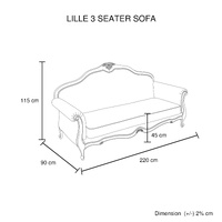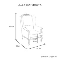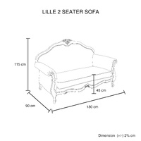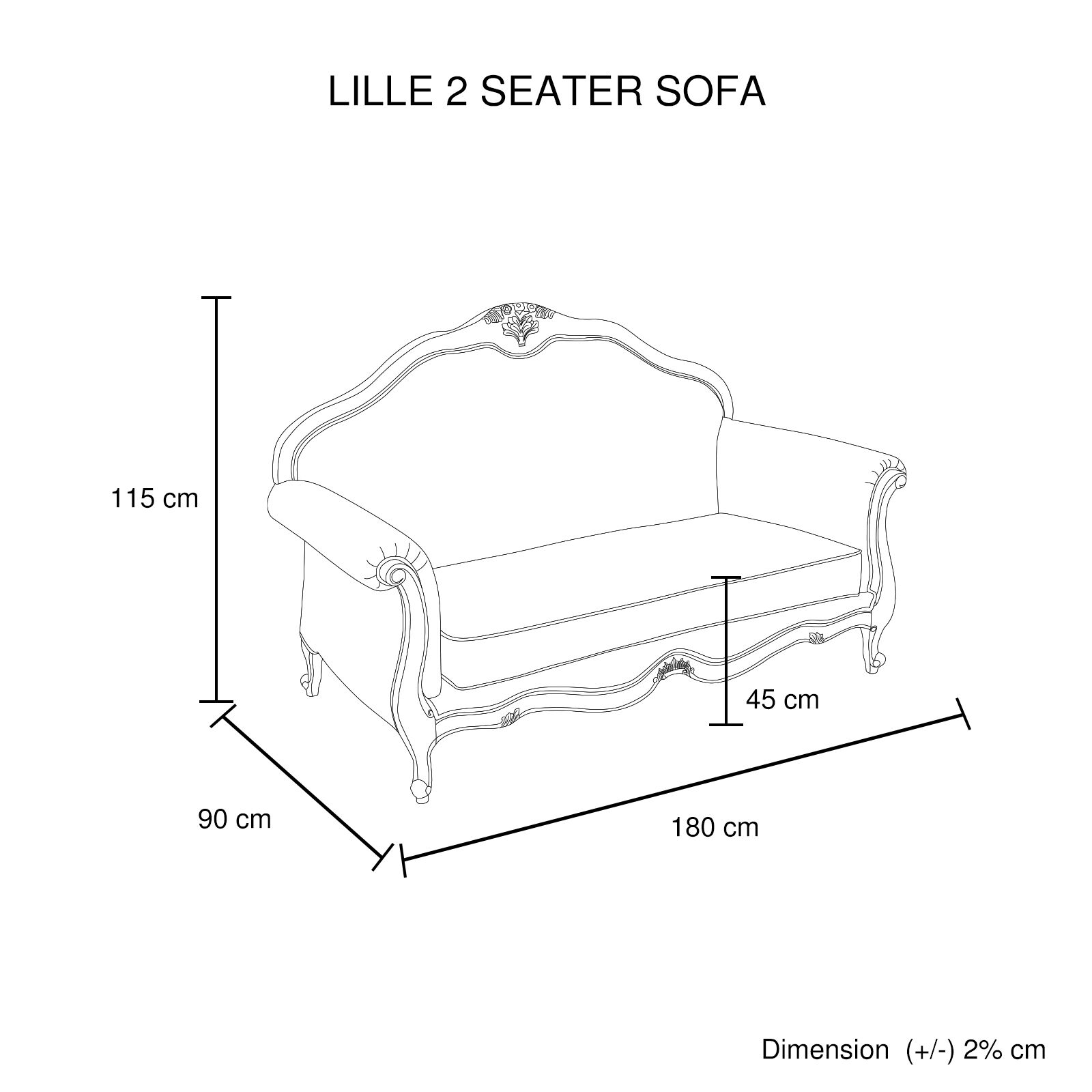 Our Lille sofa proudly boasts royal Chester Ford design and premium upholstered cover. Its medium high backrest has Oak wood frame and there is floral embellishment on top of the backrest. This Lille range has set of two and three seater sofas with one wing chair