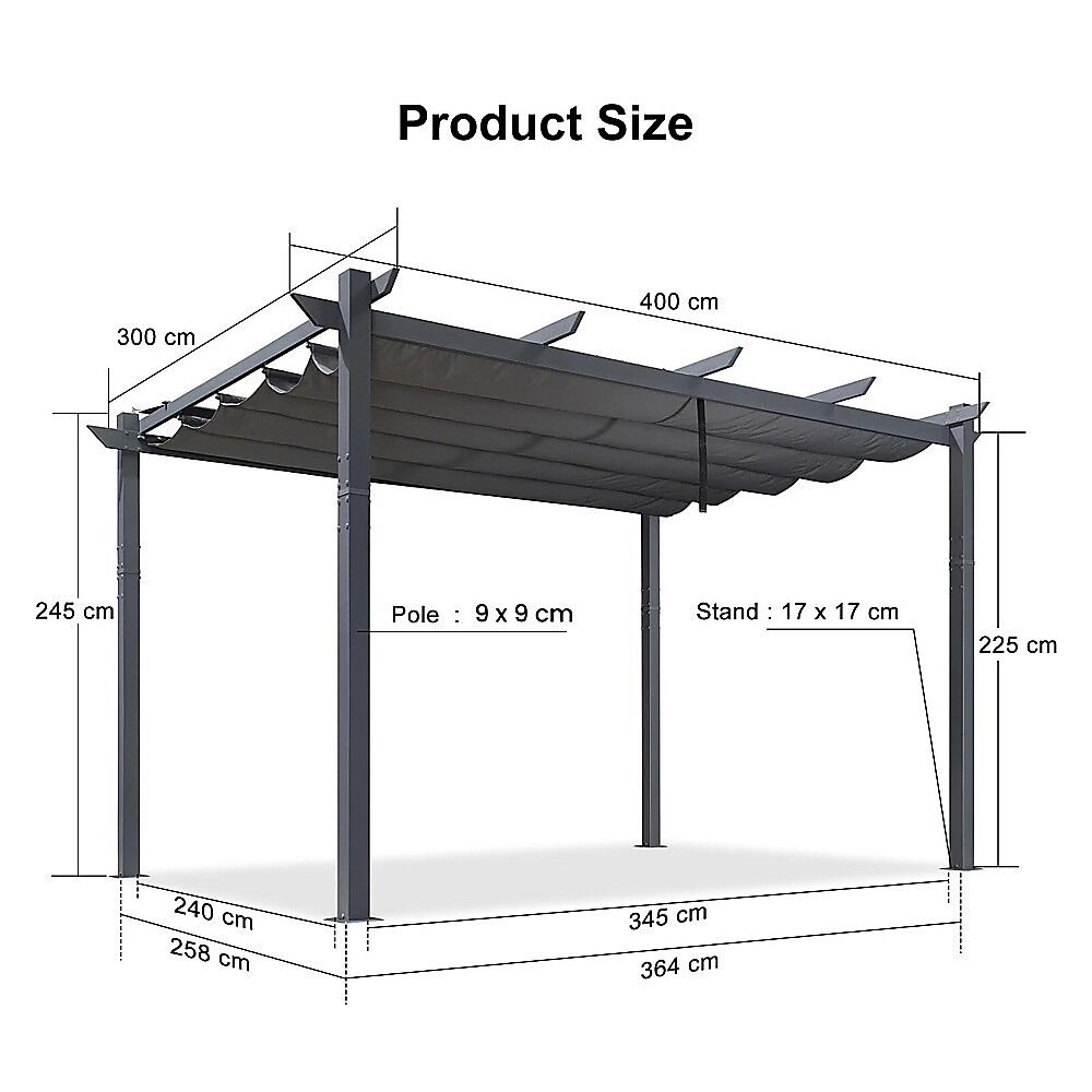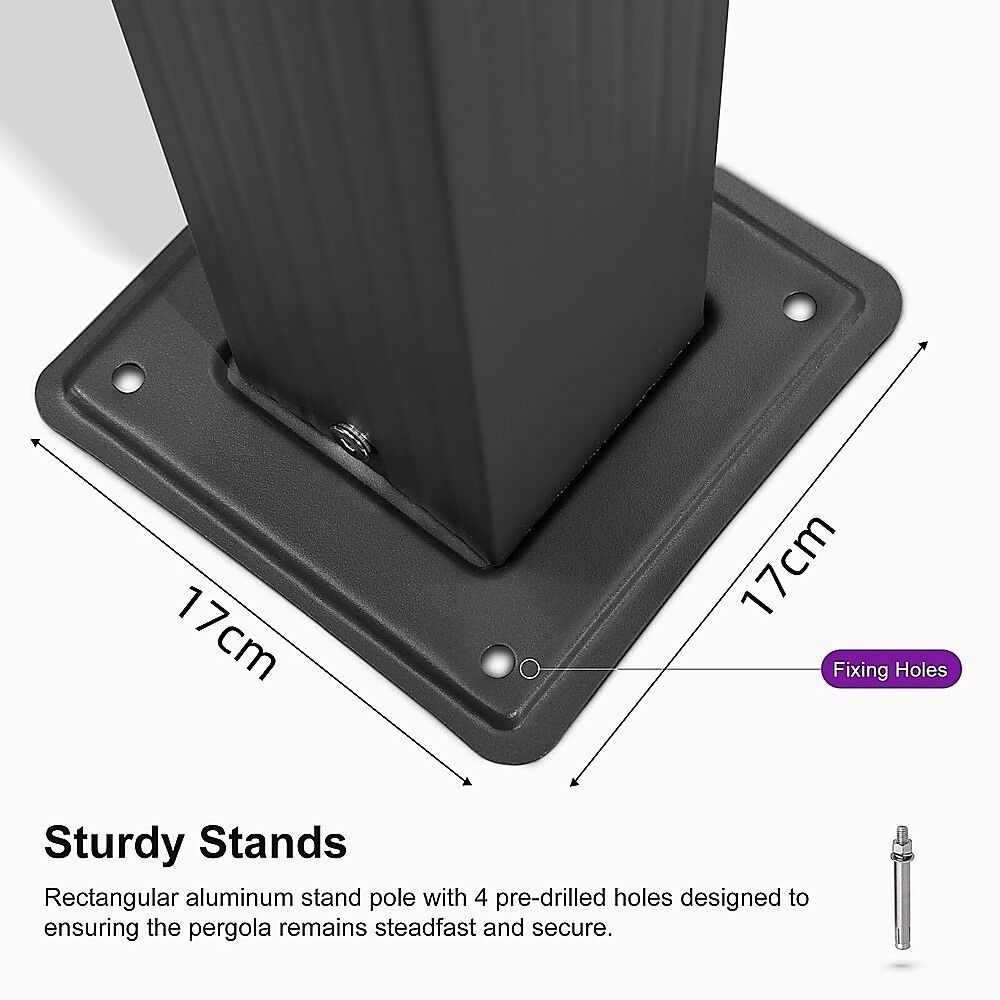 Durable Aluminium Frame: Constructed from rust-resistant, powder-coated aluminium for maximum strength and stability. This pergola's durability is due to its weather-resistant, water-resistant, and UV-resistant materials.