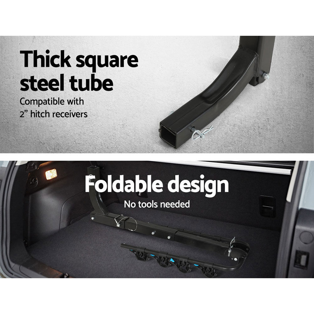 $97.75Tired of cycling the same routes all the time? Need to venture further on your bike? Then look no further than the Giantz 4-Bike carrier. Designed to fit most vehicles and various bike types, the 4-Bike carrier makes it easy for bike enthusiasts to ride in new far-off places or different terrains. The carrier is made from durable powder-coated steel and compatible with any 2-inch hitch receiver. Using the carrier is just a simple matter of loading the bike onto the rubber-protected holder and locking it down firmly with the safety lock. No messy around with straps and chains unlike other bike racks. Better still, our carrier conveniently folds down to allow fast and easy access to the rear of the vehicle. And when it comes to keeping the carrier after use, just remove and fold for hassle-free storage. Nothing ventured, nothing gain. And with the Giantz 4-Bike carrier, you can now gain a whole new world of cycling adventures.