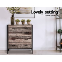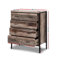 $138.17With its eclectic style, our Artiss 4-drawer Tallboy is visually stylish and totally practical. The look is unique and suits any modern or rustic decor perfectly. The four drawers are spacious and installed with metal runners for smooth movement and metal handles for reliability. Overall, the tallboy is built strong and sturdy with an enhanced weight capacity of up to 50kg. It also comes with an elevated design that comprises metal tube legs with adjustable foot pads to balance it on uneven floors if needed.