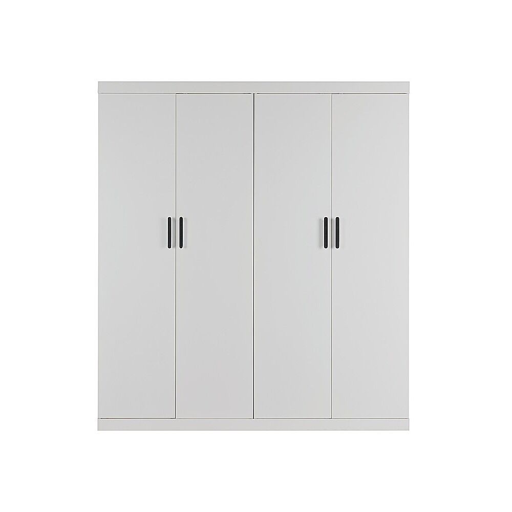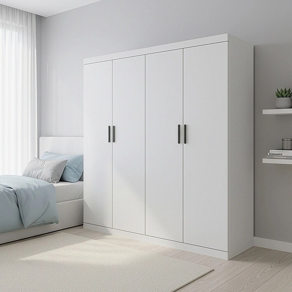 Upgrade your bedroom with this 4 Door White Wardrobe, a stylish and functional storage solution crafted from durable steel plates. Finished with powder coating and accented with black metal handles, this wardrobe brings modern elegance and long-lasting performance to any space.