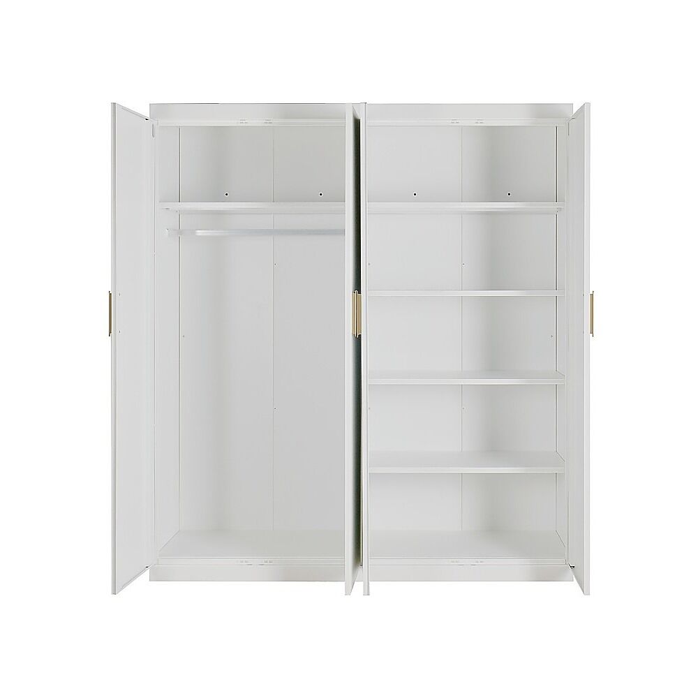 Upgrade your bedroom with this 4 Door White Wardrobe, a stylish and functional storage solution crafted from durable steel plates. Finished with powder coating and accented with gold metal handles, this wardrobe brings modern elegance and long-lasting performance to any space.