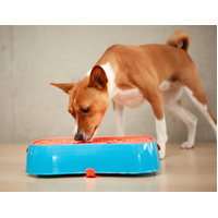 4-in-1 Slow Feeder Dog Bowl - Blue Bowl and Warm Ocean Red Lickmat