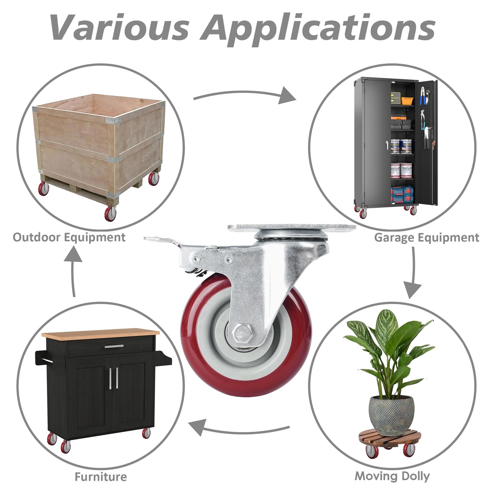 4 inch Heavy Duty Casters Lockable Caster Wheel Swivel Casters Castor with Brakes for Furniture and Workbench Cart