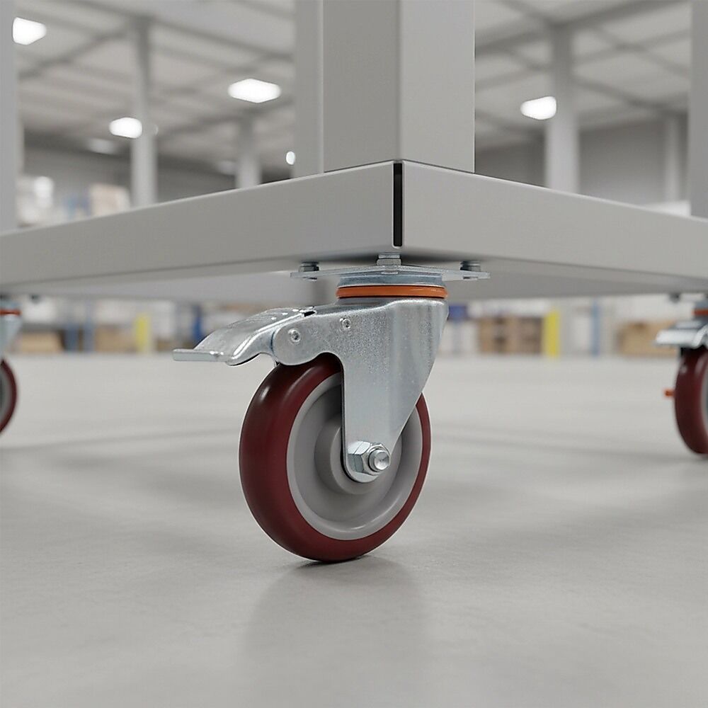 Each caster features smooth swivel rotation with dustproof construction, ensuring quiet, flexible movement even under heavy loads. The easy lock and release brake system provides reliable stability when stationary, keeping your equipment securely in place when needed.