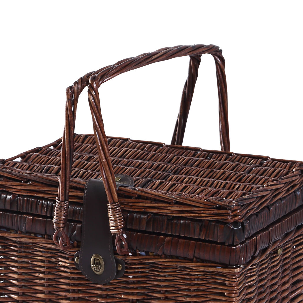A must have for picnic lovers ! Take it with you when going for a trip ! Crafted from quality willow elegant and sturdy, enough large for your favorite fruits, wine and other foods. Features PU leather straps to keep cutlery, wine glass, plates and corkscrew in place. Further more, a colour matching ground blanket in basket to sit on. A handle for easy transportation, great for picnics and other outdoor gatherings.