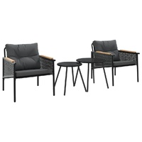 This balcony furniture set is the perfect addition to your backyard, terrace, or patio, providing a comfortable and inviting space for chatting with family and friends or simply relaxing and enjoying the outdoors. Durable and long-lasting: Textilene fabric is appreciated for its durability, water and fade resistance, easy maintenance, and protection against UV rays and mould, making it an ideal choice for outdoor furniture and shade structures.Comfortable seat experience: This outdoor furniture, complete with thickly padded cushions, offers a comfortable seating experience.Sturdy tabletop: The table of this outdoor garden funiture set has a sturdy top, which is ideal for placing your drinks or any other necessities you need close at hand.Removable and washable cover: These seat cushions feature removable covers for easy washing and maintenance.Robust and stable frame: The powder-coated steel frame ensures the garden furniture is strong and stable for daily outdoor use. Good to know:To make sure your outdoor furniture stays beautiful, we recommend protecting it with a waterproof cover.