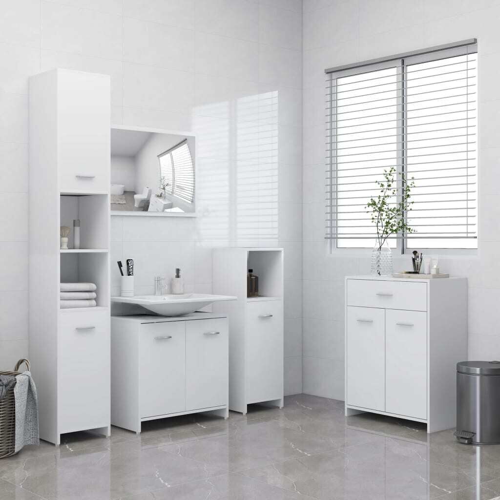$299.81With this 4 piece bathroom furniture set, you can create additional storage space for your bathroom with a striking, tidy appearance. The clean lines and sleek design blend into your home perfectly. This set contains a bathroom cabinet, a sink cabinet, a low cabinet and a high cabinet. These cabinets offer various storage options and extra space to store items in your bathroom. Additionally, the set is easy to clean with a damp cloth.