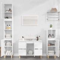 $316.73This stylish bathroom furniture set, featuring spacious storage space, is an excellent addition to your bathroom, giving it a tidy and striking appearance! Durable material: The engineered wood is of exceptional quality with a smooth surface and features strength, stability and resistance to moisture.Ample storage space: These bathroom cabinets offer ample storage space for keeping your bathroom supplies well organised.Wooden feet: The solid eucalyptus wood feet give the bathroom furniture a natural and pleasant look while ensuring stability.Practical mirror: Use the included mirror to neat your daily dressing. It also adds an excellent appearance to your home decor.Easy-to-clean surface: The bathroom unit is easy to clean with a damp cloth. Warning:To prevent it being overturned, this product must be used with the provided wall attachment device. Good to know:Screws and plugs for inside the wall are not included. We advise to find and use screws and plugs suitable specifically for your walls. If you're not sure, you can consult with a professional. Please read and follow each step of the instructions.