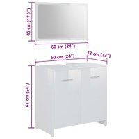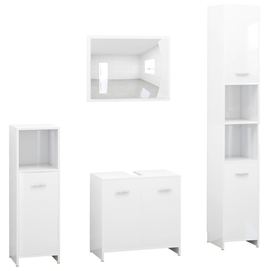 This stylish bathroom furniture set, featuring 1 high cabinet, 1 medium cabinet, 1 under basin cabinet and 1 mirror, creates additional storage space for your bathroom with a stunning and neat appearance. Made of premium engineered wood, this set is durable and stable. The chic high cabinet has 6 compartments and 2 doors while the medium cabinet has 3 compartments and 1 door. Both offer spacious space to store your essential items in your bathroom. The basin cabinet, featuring 1 compartment and 2 doors, provides ample space to store your toiletries, beauty products and smaller items. You can even place combs, cosmetics, toothbrushes, toothpaste, etc., neatly organised and within reach. The mirror adds a unique appearance to your existing home decor. Additionally, this bathroom set is easy to clean with a damp cloth.