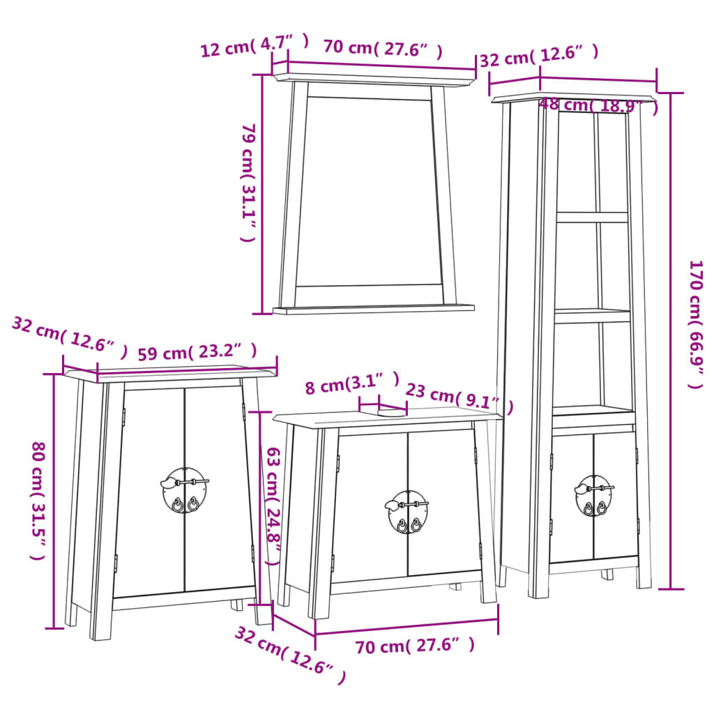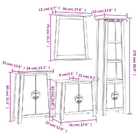 This bathroom furniture set is an excellent addition to your bathroom, giving it a tidy and striking appearance! Solid pine wood: Solid pine wood is a beautiful natural material. Pine wood has a straight grain, and the knots give the material its signature, rustic look.Ample storage space: The bath cabinet offers ample space to easily accommodate your essential toiletries and bath items such as soaps, shampoo, toothpaste, etc.Convenient handles: The metal handles allow you to open the bathroom storage cabinet easily to get what you want.Clear image: The mirror provides a fine and non-distorted reflection, so it is suitable for making up, shaving or checking the suit before going out. Warning:To prevent it from tipping over, this product must be used with the wall attachment device (not provided). Good to know:Each item is unique with variations in colours and grains. The delivery is random, ensuring the exclusivity and individuality of your product.