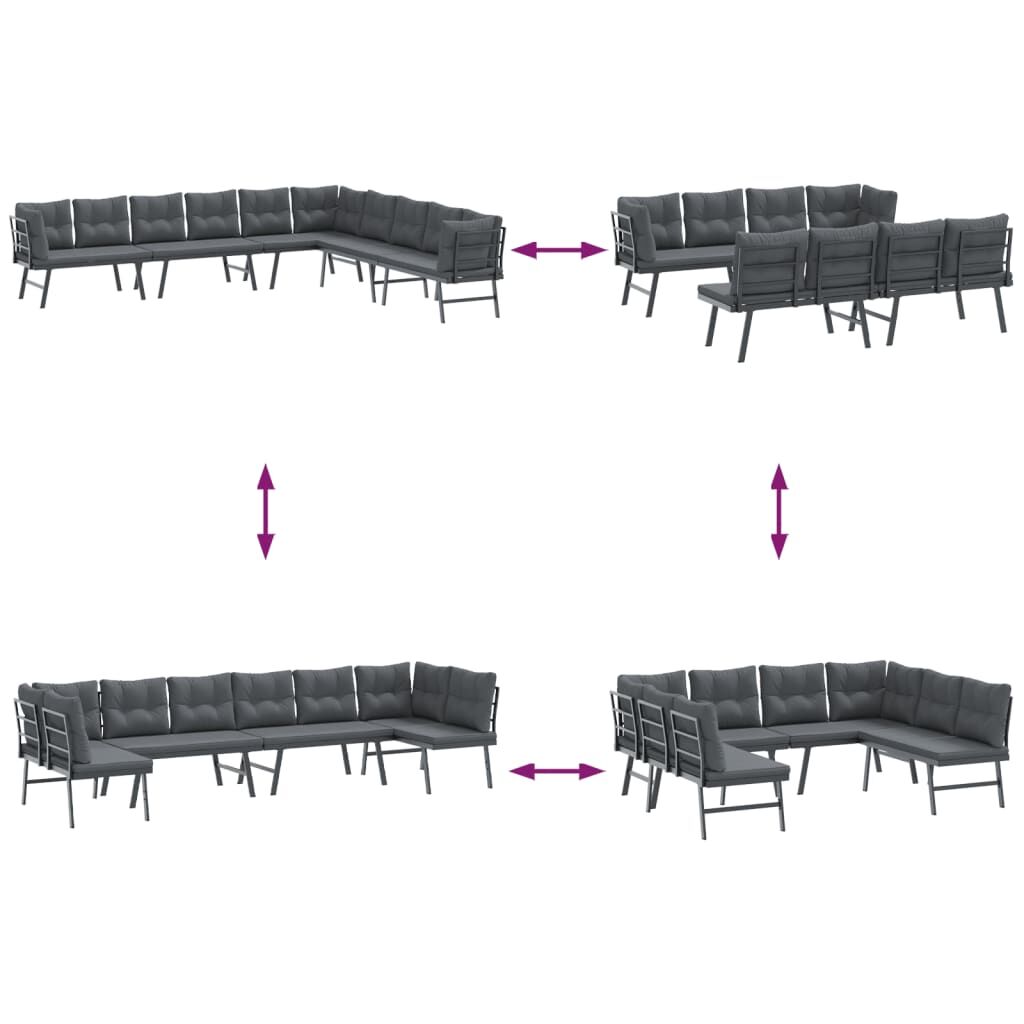 These garden benches are perfect for outdoor use and are designed to be the focal point of your garden, terrace, patio, etc. Robust and stable frame: The powder-coated steel frame is strong, stable, durable, and resistant to corrosion and harsh weather, ensuring long-lasting performance.Comfy design: The slightly curved backrests add extra seating comfort for the bench.Comfortable seat experience: This outdoor furniture, complete with a thickly padded cushion, offers a comfortable seating experience.Removable and washable cover: These seat cushions feature removable covers for easy washing and maintenance. Good to know:To make sure your outdoor furniture stays beautiful, we recommend protecting it with a waterproof cover.