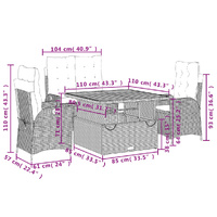 This garden dining set is a great choice for al fresco dining or just relaxing in the garden, backyard, or on the patio. Durable material: PE rattan, also known as poly rattan, is a strong, low-maintenance synthetic material that looks like natural rattan. It's lightweight, easy to clean, and commonly used for outdoor furniture due to its durability and weather-resistant properties.Adjustable backrest: This garden seat has a handle. You can adjust the backrest to any position by pulling the handle, and quickly return it to its original position.Adjustable tabletop: The tabletop can be lifted to make the table higher, which transforms the outdoor table from a coffee table to a dining table. It's perfect for having guests over or eating meals outside.Removable and washable cover: These seat cushions feature removable covers for easy washing and maintenance. The back cushions have a flap at the back for easy attachment to the backrests.Comfortable seat experience: This outdoor furniture, complete with thickly padded cushions, offers a comfortable seating experience. Good to know:To make sure your outdoor furniture stays beautiful, we recommend protecting it with a waterproof cover.