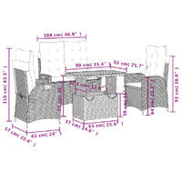 This garden dining set is a great choice for al fresco dining or just relaxing in the garden, backyard, or on the patio. Durable material: PE rattan, also known as poly rattan, is a strong, low-maintenance synthetic material that looks like natural rattan. It's lightweight, easy to clean, and commonly used for outdoor furniture due to its durability and weather-resistant properties.Adjustable backrest: This garden seat has a handle. You can adjust the backrest to any position by pulling the handle, and quickly return it to its original position.Adjustable tabletop: The tabletop can be lifted to make the table higher, which transforms the outdoor table from a coffee table to a dining table. It's perfect for having guests over or eating meals outside.Removable and washable cover: These seat cushions feature removable covers for easy washing and maintenance. The back cushions have a flap at the back for easy attachment to the backrests.Comfortable seat experience: This outdoor furniture, complete with thickly padded cushions, offers a comfortable seating experience. Good to know:To make sure your outdoor furniture stays beautiful, we recommend protecting it with a waterproof cover.