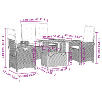 This garden dining set is a great choice for al fresco dining or just relaxing in the garden, backyard, or on the patio. Durable material: PE rattan, also known as poly rattan, is a strong, low-maintenance synthetic material that looks like natural rattan. It's lightweight, easy to clean, and commonly used for outdoor furniture due to its durability and weather-resistant properties.Adjustable backrest: This garden seat has a handle. You can adjust the backrest to any position by pulling the handle, and quickly return it to its original position.Adjustable tabletop: The tabletop can be lifted to make the table higher, which transforms the outdoor table from a coffee table to a dining table. It's perfect for having guests over or eating meals outside.Removable and washable cover: These seat cushions feature removable covers for easy washing and maintenance. The back cushions have a flap at the back for easy attachment to the backrests.Comfortable seat experience: This outdoor furniture, complete with thickly padded cushions, offers a comfortable seating experience. Good to know:To make sure your outdoor furniture stays beautiful, we recommend protecting it with a waterproof cover.