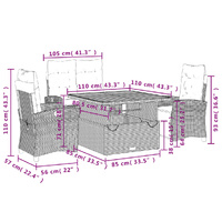This garden dining set is a great choice for al fresco dining or just relaxing in the garden, backyard, or on the patio. Durable material: PE rattan, also known as poly rattan, is a strong, low-maintenance synthetic material that looks like natural rattan. It's lightweight, easy to clean, and commonly used for outdoor furniture due to its durability and weather-resistant properties.Adjustable backrest: This garden seat has a handle. You can adjust the backrest to any position by pulling the handle, and quickly return it to its original position.Adjustable tabletop: The tabletop can be lifted to make the table higher, which transforms the outdoor table from a coffee table to a dining table. It's perfect for having guests over or eating meals outside.Removable and washable cover: These seat cushions feature removable covers for easy washing and maintenance. The back cushions have a flap at the back for easy attachment to the backrests.Comfortable seat experience: This outdoor furniture, complete with thickly padded cushions, offers a comfortable seating experience. Good to know:To make sure your outdoor furniture stays beautiful, we recommend protecting it with a waterproof cover.