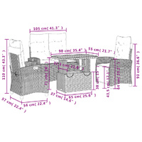 This garden dining set is a great choice for al fresco dining or just relaxing in the garden, backyard, or on the patio. Durable material: PE rattan, also known as poly rattan, is a strong, low-maintenance synthetic material that looks like natural rattan. It's lightweight, easy to clean, and commonly used for outdoor furniture due to its durability and weather-resistant properties.Adjustable backrest: This garden seat has a handle. You can adjust the backrest to any position by pulling the handle, and quickly return it to its original position.Adjustable tabletop: The tabletop can be lifted to make the table higher, which transforms the outdoor table from a coffee table to a dining table. It's perfect for having guests over or eating meals outside.Removable and washable cover: These seat cushions feature removable covers for easy washing and maintenance. The back cushions have a flap at the back for easy attachment to the backrests.Comfortable seat experience: This outdoor furniture, complete with thickly padded cushions, offers a comfortable seating experience. Good to know:To make sure your outdoor furniture stays beautiful, we recommend protecting it with a waterproof cover.