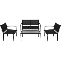 This garden furniture set combines style and functionality, and will become the focal point of your garden or patio. All pieces in this furniture set have a sturdy powder-coated steel frame, which makes them highly durable. It is also lightweight, which makes it easy to move around. Thanks to the weather-resistant textilene, the garden bench and chairs are easy to clean, hardwearing and suitable for daily use. Delivery includes 2 single chairs, 1 bench and 1 coffee table.