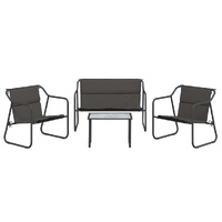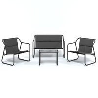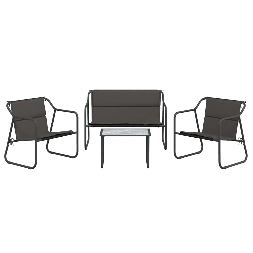 This trendy garden lounge set, featuring an elegant and contemporary design, is a great choice for relaxing in your garden. Durable material: Textilene fabric allows air to flow freely through it while being resistant to UV rays. This makes textilene ideal for hot weather. As a durable and strong material, it is highly resistant to tears, punctures and mildew.Sturdy and stable frame: The steel frames make the lounge set sturdy and stable for daily outdoor use.Comfortable seat experience: The chair and bench, featuring a sloping back and deep seat, are perfect for releasing all your pressure and fatigue. Additionally, the thickly padded cushion provides comfort for your sitting time.Practical table: The sturdy table is perfect for placing meals, drinks, and other decorative items. Note:To make sure your outdoor furniture stays beautiful, we recommend protecting it with a waterproof cover.