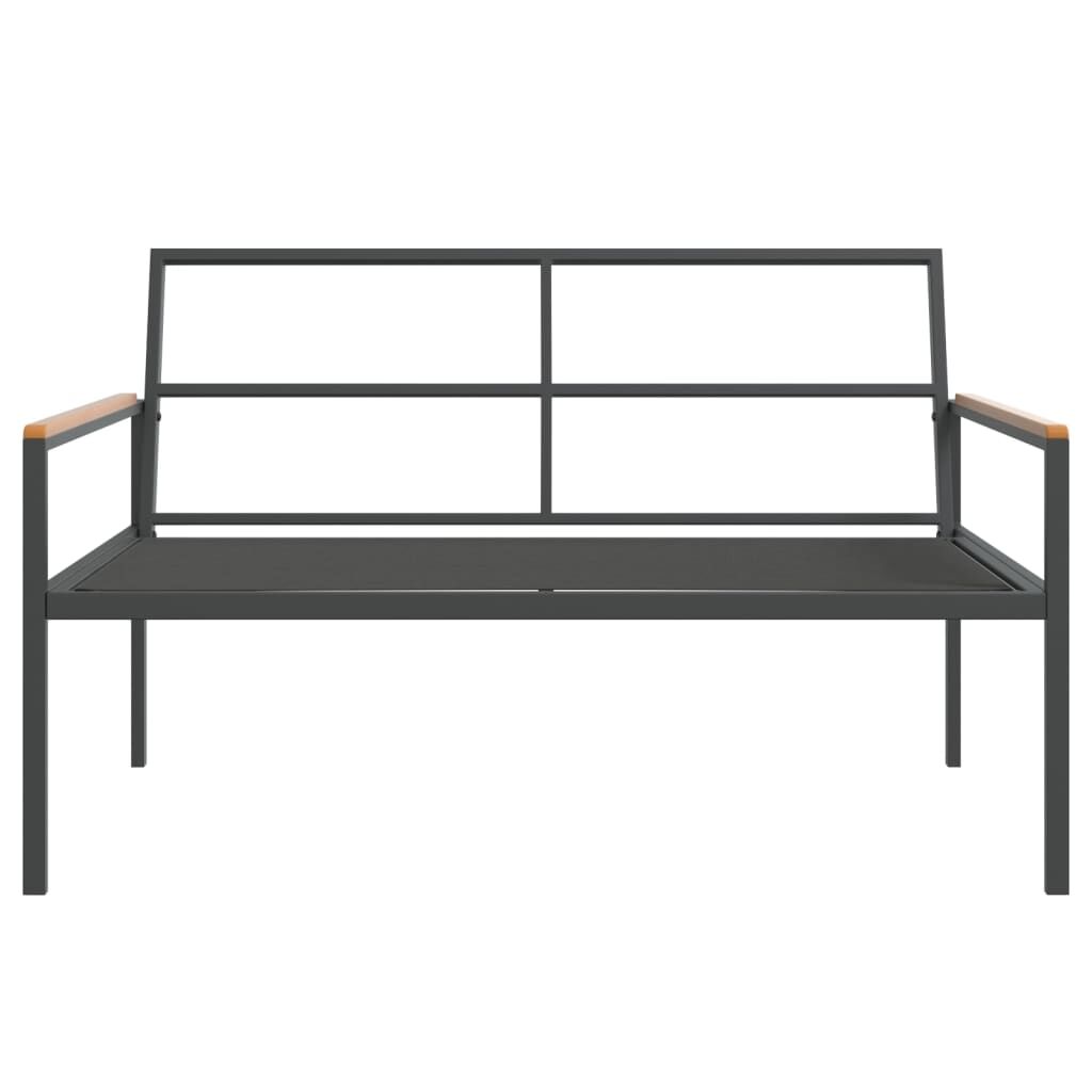 This trendy garden lounge set, featuring an elegant and contemporary design, is a great choice for relaxing in your garden. Durable material: Textilene fabric allows air to flow freely through it while being resistant to UV rays. This makes textilene ideal for hot weather. As a durable and strong material, it is highly resistant to tears, punctures and mildew.Sturdy and stable frame: The powder-coated steel frames make the lounge set sturdy and stable for daily outdoor use.Stable tabletop: The stable tabletop of the garden table is perfect for placing your drinks, food and other decorative items.Comfortable seat experience: The backrests and armrests add extra seating comfort for the garden chairs and garden bench. Also, the thickly padded cushions provide comfort for your sitting time. Note:To make sure your outdoor furniture stays beautiful, we recommend protecting it with a waterproof cover.
